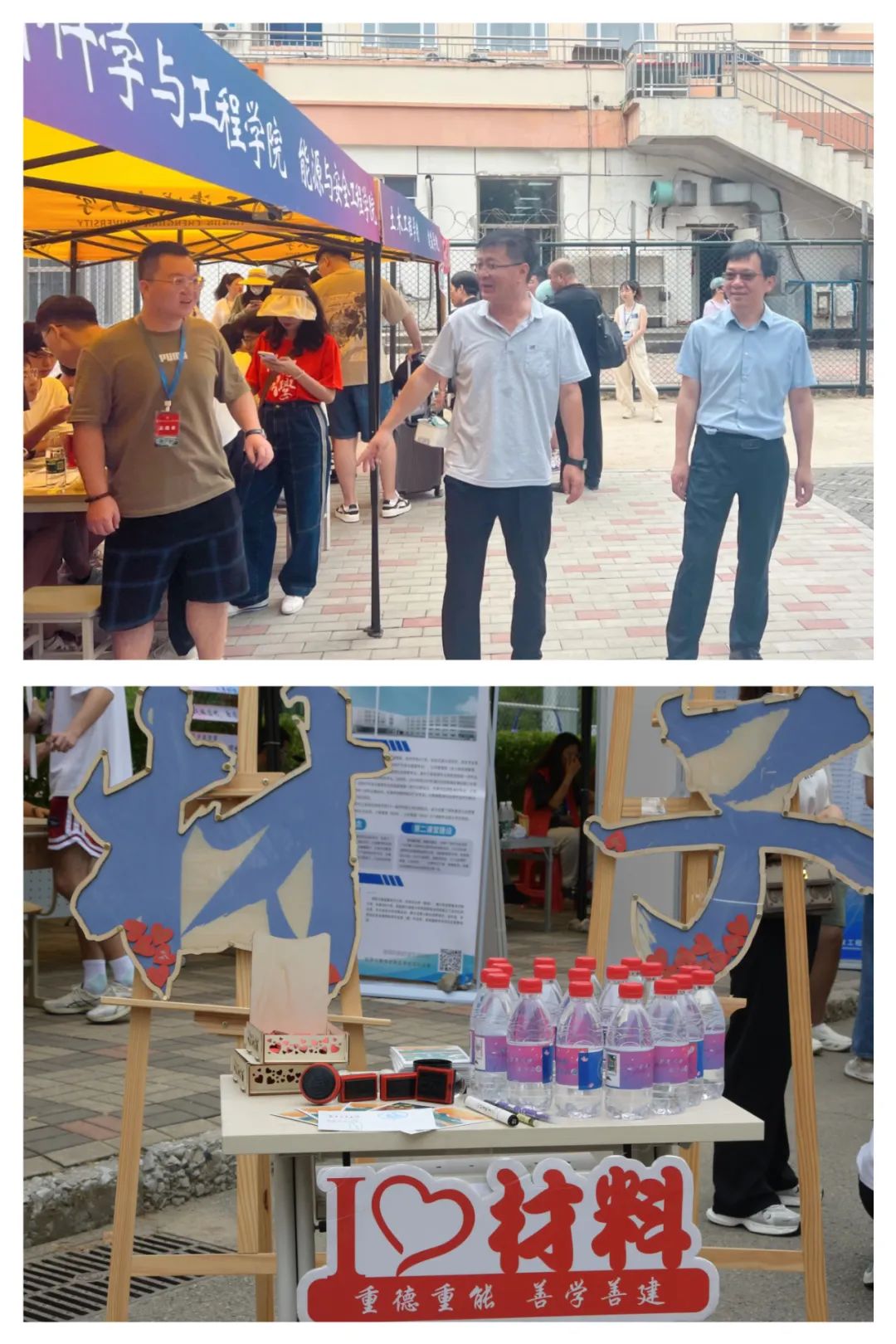 迎新接待处,学院党政领导班子亲切参与迎新过程,询问报到流程是否规范、学生服务是否到位、志愿者供水是否及时、新生入住有什么困难等等,为迎新队伍解决实际困难。他们为每名新生发放矿泉水,“心栖梦归处,不负韶年华”、“序章初始,奔赴山海”,矿泉水瓶身特制的标签上一句句暖心的祝福都表达了学院老师们对新生的希冀与期许。