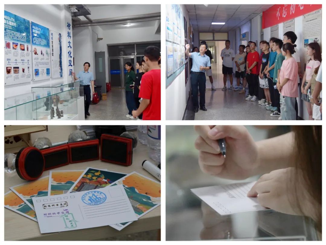 在学院迎新点接待处,同学们办理完资格审查等报到手续后,在志愿者的带领下,参观打卡学院“材·忆”院史展、“材料文化空间”、“陶瓷科普基地”,同学们手持学院精心准备的校园美景明信片,在志愿者的讲解引领下,提前走入材料文化的世界,了解材料专业的魅力,在参观学习中完成新生的第一堂专业启蒙教育课。一个个小小的印章落在明信片上,同学们在旁边写上“初见城大·我给城大的三行情诗”,写下对城大的初印象以及对自己未来四年大学生活的憧憬。
