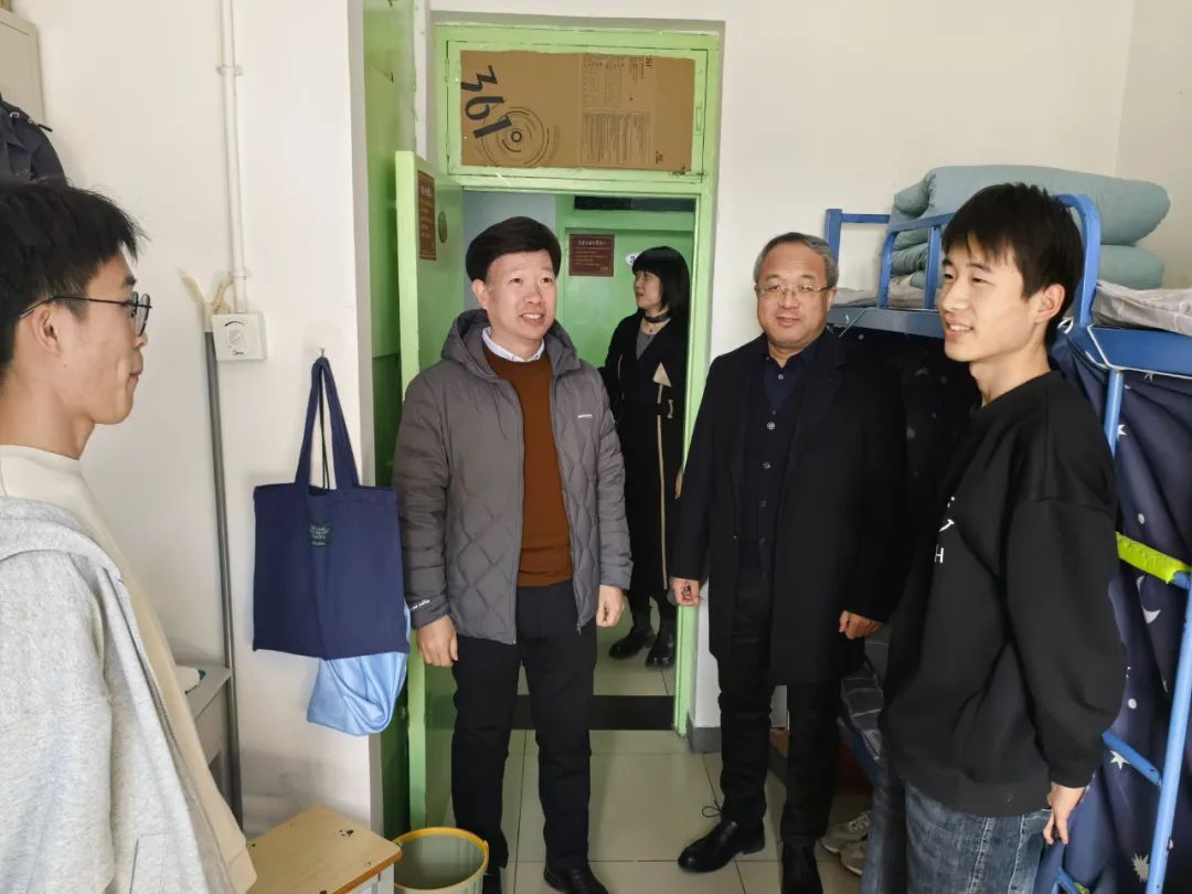随后,领导班子深入学生宿舍,深入了解同学们的新学期状态,并为他们送上了温暖的问候。走访过程中,学院领导与同学们亲切交流,询问大家的学习、生活情况,以及新学期的计划和目标,鼓励同学们要珍惜时光,积极参加学校和学院各类教育教学活动,以更加饱满的精神面貌迎接新学期的挑战。同学们表示新学期第一天深刻感受到学校教学、生活环境的进一步提升,感受到老师们的关心与关怀,在新学期的崭新起点上,定将扬帆起航,不负春光!